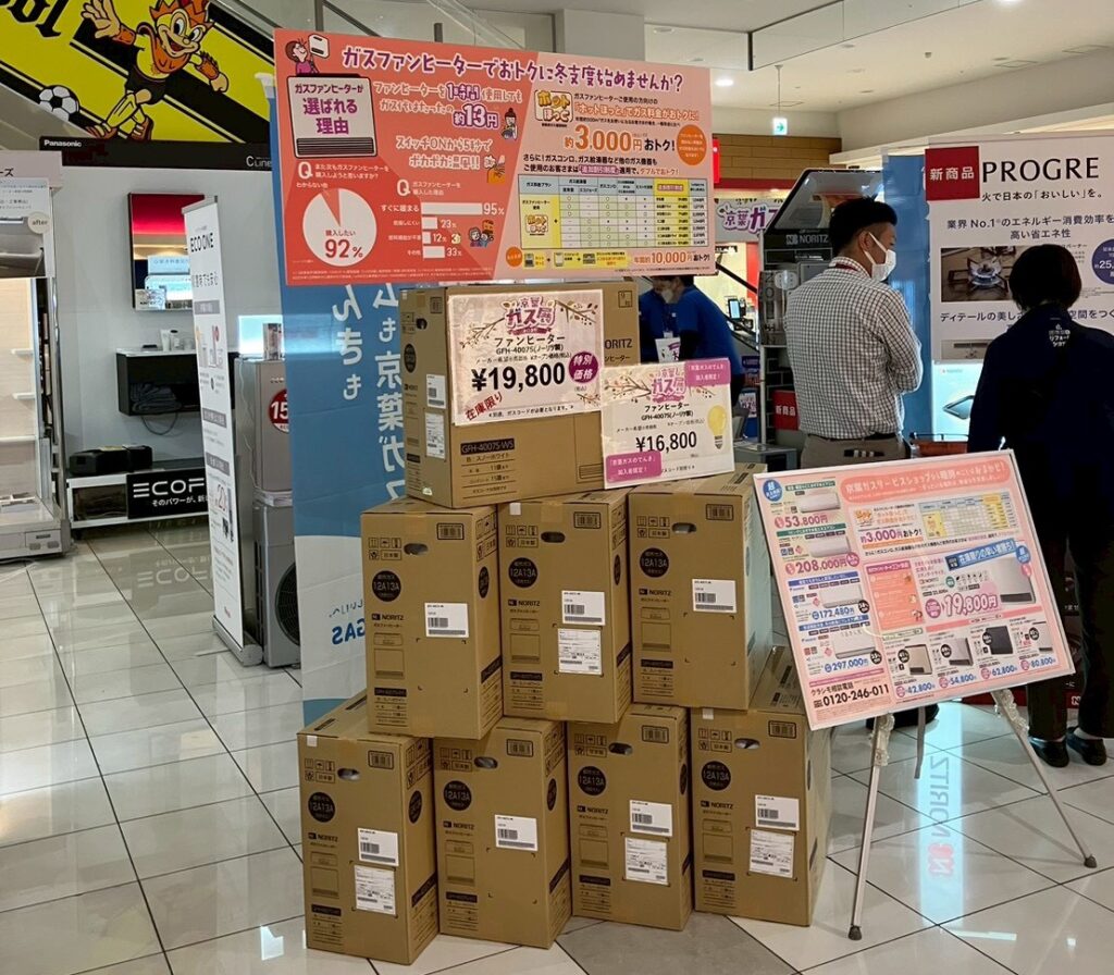 こんなにたくさん販売していたガスファンヒーターも台数がかなり少なくなってきています🥶