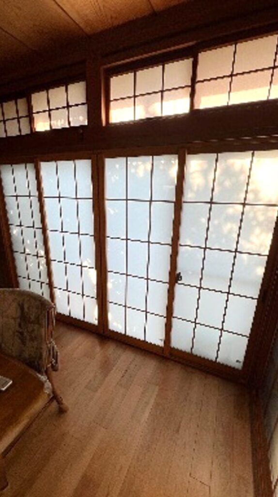 施工前→施工後(4枚建の障子)畳からフローリングに変更したので、床暖房の効率がより発揮できるように内窓を採用しました。